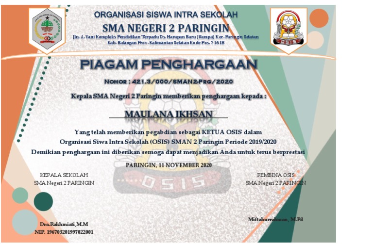 Contoh Sertifikat Resmi Mpk Dan Osis Pdf